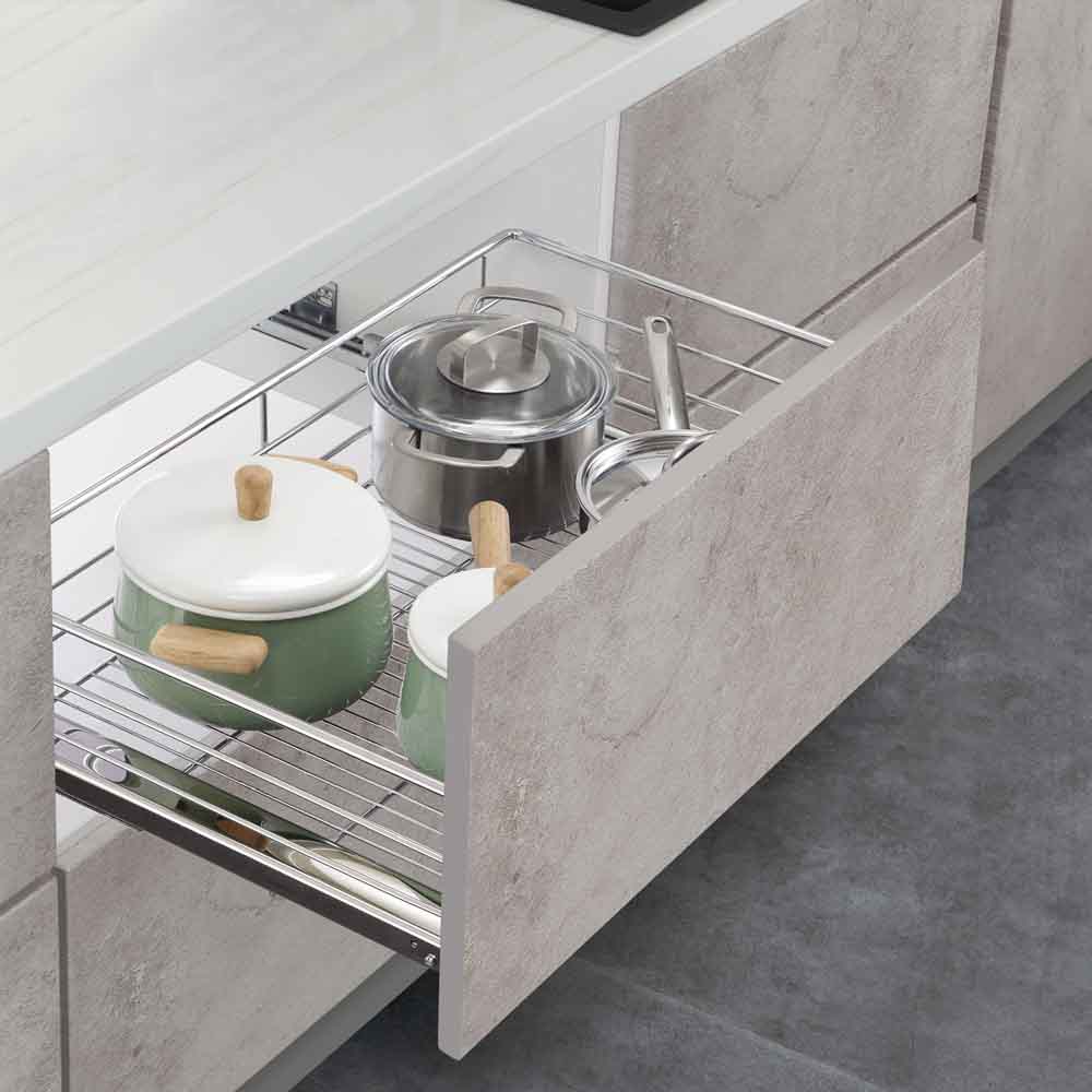 Mantén tus espacios siempre ordenados con esta cesta multipropósito extraíble, con frente de madera (anclada a mueble), ideal para almacenar ollas, bowls, verduras, frutas u otros artículos tanto en la cocina como en la loggia u otros espacios del hogar. Su diseño versátil y funcional permite un acceso rápido y cómodo gracias a su sistema de extracción total con cierre suave.