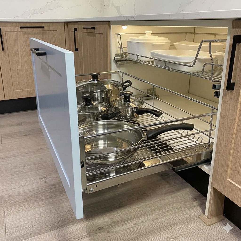 Cesta Cromada Cierre Suave Frente Madera